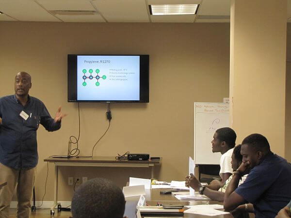 The training and sensitisation sessions were designed to inform importers and retailers of refrigerant gas about the new and alternative types of gases available on the local and international markets, the requirements for safe handling, storage and to highlight the benefits of using a refrigerant identifier.